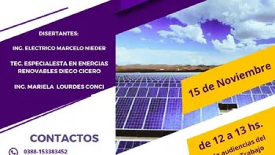 El encuentro tendrá lugar en la Sala de Audiencias del Tribunal de Trabajo del Centro Judicial, mañana miércoles 15 de noviembre, en horas del mediodía. La capacitación será dictada por el ingeniero Marcelo Nieder, también director de Energías Renovables y Eficiencia Energética de la Secretaría de Energía, Diego Cicero, técnico especialista en Energías Renovables, y la ingeniera Mariela Lourdes Conci.