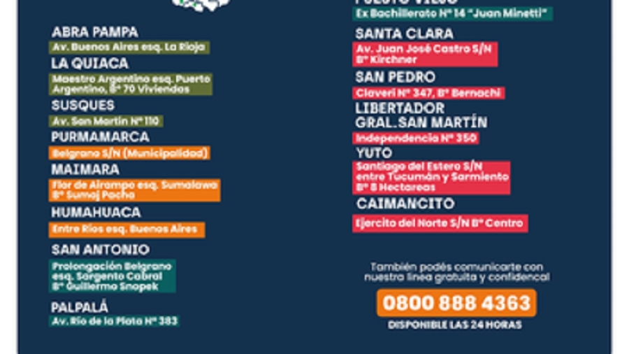 Es importante resaltar que en la Provincia de Jujuy funciona el Centro de Atención Integral a la Diversidad Sexual con la misma modalidad de atención que los 19 Centros y donde se asesora sobre diversas consultas a las personas del colectivo LGBTIQA+, tanto en trámites como cambio de identidad, tratamientos hormonales, etc. Este Centro tiene la particularidad de ser el primero en Argentina en litigar de manera gratuita y está ubicado en calle Belgrano 1182 de San Salvador de Jujuy También está habilitada la línea provincial “Podemos hablar. Jujuy te escucha” 0 800 888 4363. Es gratuita, funciona las 24 horas, todo el año. El Gobierno de la Provincia de Jujuy desde el año 2015 lleva a cabo acciones con la finalidad de prevenir y erradicar la violencia por motivos de género y discriminación por razones de orientación sexual, identidad y expresión de género, permitiendo a las mujeres y personas de la diversidad acceder a la defensa y ejercicio de sus derechos.