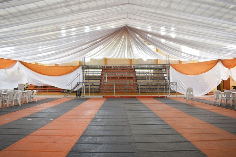 En relación a la cena, el funcionario explicó que los estudiantes participaron en una degustación para elegir el menú, que incluye entrada, milanesa napolitana con papas fritas, helado y una hamburguesa con gaseosa al finalizar. El costo de la tarjeta se redujo a 40.000 pesos, gracias a la negociación mantenida entre el Ejecutivo y la empresa prestadora del servicio. El estadio Olímpico Municipal ya se encuentra prácticamente listo con la instalación de telas, piso, escenario, audio e iluminación.