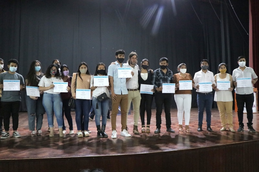 Materializando el fuerte respaldo que brinda el municipio de Palpalá a la formación de recursos humanos jóvenes en las nuevas herramientas tecnológicas y con el propósito de fortalecer sus capacidades laborales, en la jornada de hoy se concretó en la sala del cine teatro Altos Hornos Zapla, la entrega de certificados a alumnos que finalizaron la primera etapa de su formación como desarrolladores web.