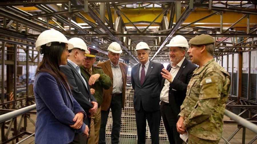 El ministro, quien saludó durante la recorrida al personal antártico y a quienes se encargan de la obra, estuvo acompañado por el jefe del Ejército, teniente general Juan Martín Paleo, el Comandante Conjunto Antártico, general de brigada Edgar Calandín; el presidente de Tandanor, Miguel Ángel Tudino, y el directorio de la empresa.
