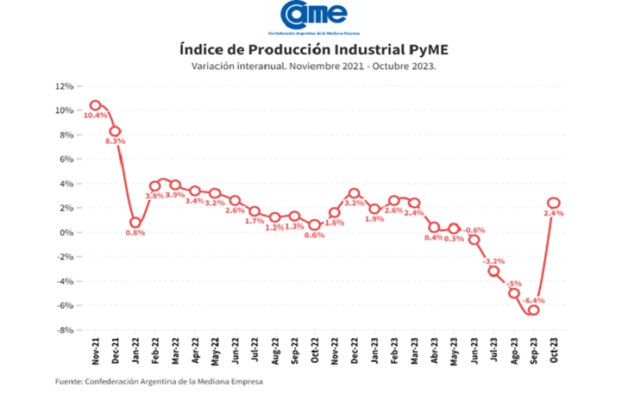 Durante octubre, la actividad manufacturera de las pequeñas y medianas empresas experimentó un aumento del 2,4% en comparación con el mismo período del año anterior, marcando el fin de una serie de cuatro meses consecutivos de descensos. A pesar de este repunte, la producción acumula una caída del 0,5% en los primeros diez meses del año. A nivel mensual, se observó un significativo incremento del 9,8%, impulsado por una demanda en crecimiento que se debió a las políticas de ingreso implementadas por el Gobierno en el último mes.