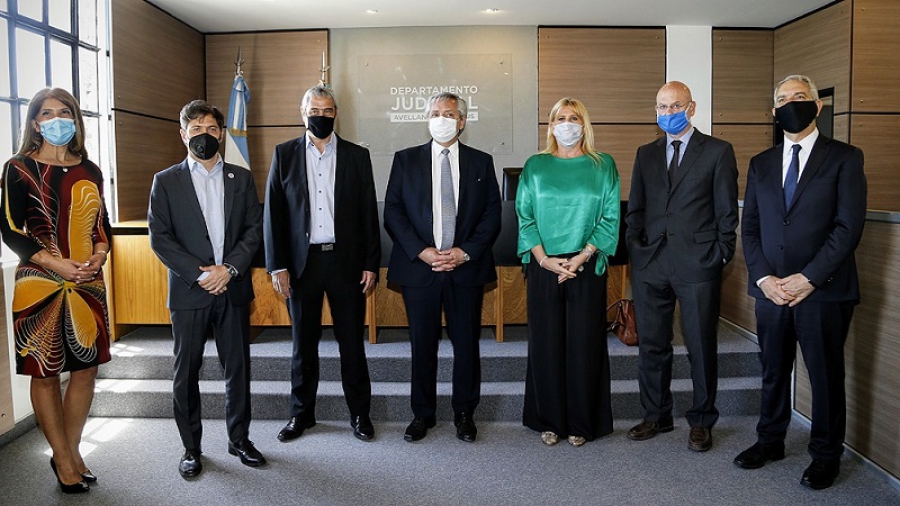 También participaron del acto el ministro del Interior, Eduardo de Pedro y el intendente local, Jorge Ferraresi, así como también el presidente de la Suprema Corte de Buenos Aires, Daniel Fernando Soria.