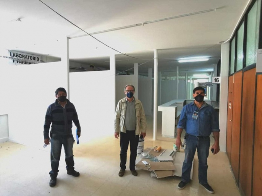 El ministro e Infraestructura, Carlos Stanic, brindó detalles de la obra que se ejecuta en un área de más de 500m2 del edificio de avenida Italia esquina Independencia de la capital provincial, donde funciona el Ministerio de Salud provincial: “los sectores donde funcionaban diferentes consultorios del Centro Sanitario se aprovechan para hacer piezas de internación y, simultáneamente, sobre área central de circulación se realizan unas divisorias; todo permitirán colocar 50 camas con asistencia de respiradores móviles”, explicó.