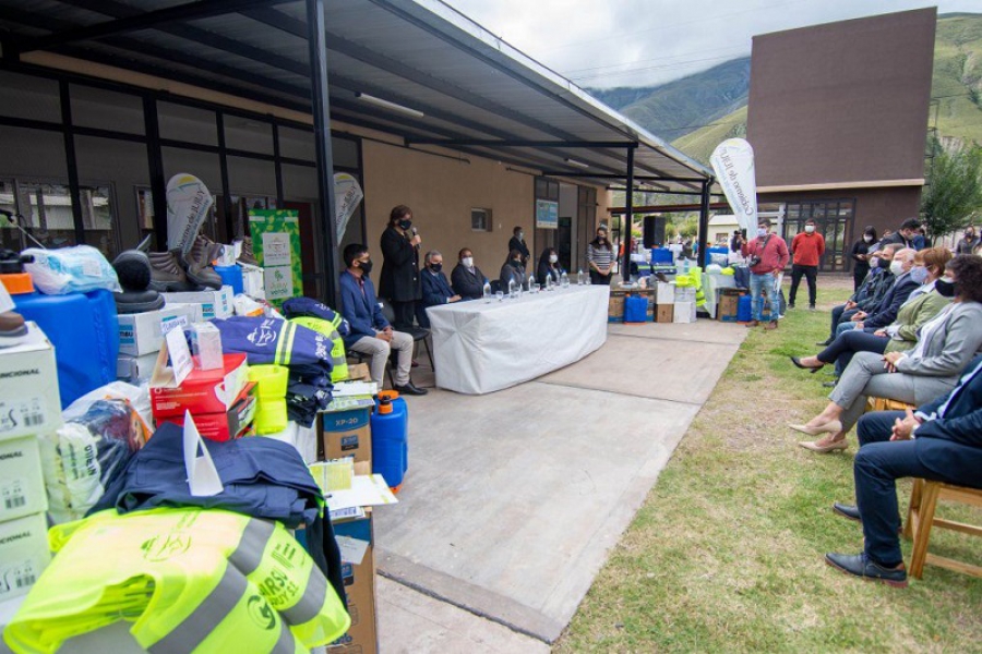 “Este año compraremos equipamiento para 33 jurisdicciones comunales, a lo que se sumarán más licitaciones de obras”, puntualizó y recalcó que “el dato más importante es que cerramos basurales a cielo abierto, verdaderos focos de contaminación”. Por otra parte, el mandatario reivindicó la decisión de “trabajar juntos, más allá de los pensamientos políticos diferentes, porque esta es la manera de servir al pueblo”. “Sigamos por este camino, que es el de la paz y la unión, sin dejar margen a los violentos que quieren volver”, señaló y subrayó que “así pudimos poner de pie a Volcán”. En tanto la Ministra María Inés Zigarán señaló que "este plan, que desarrollamos en el marco de la pandemia, pretende garantizar mayor seguridad sanitaria a las y los trabajadores municipales que prestan servicio de recolección y gestión de residuos". "Venimos implementando un modelo de transición que tiene que ver con la contenerización que permite llevar los residuos al Centro Ambiental, hasta que estén los puntos de acopio, pero que ya nos permitió desde el año pasado y aún en contextos de pandemia, hacer grandes avances", concluyó la funcionaria del Ejecutivo. Luego destacó el rol de los municipios de la Quebrada, con quienes se logró la clausura de 4 basurales a cielo abierto, desde el año pasado. Posteriormente, los jefes y las jefas comunales, valoraron el rol del gobernador y la ministra, destacando el compromiso y la capacidad de dar respuestas, y agradecieron la entrega de los insumos y recursos que fortalece sus capacidades de gestión de los residuos. El mandatario Provincial y la ministra ponderación por su parte lo avances que vienen registrando los gobiernos locales en la materia. Proyecciones A fines del 2021 se proyecta iniciar la construcción de la infraestructura asociada al Centro Ambiental Jujuy. "En Volcán se construirá un Punto de Acopio en un terreno donado por Ana Bárcena", según precisó la titular de la cartera ambiental. Y añadió que "también se crearán Puntos de Acopio en Purmamarca y probablemente en Tumbaya, que funcionarán como una suerte de Estaciones de Transferencia para luego trasladar los residuos al Centro Ambiental". Objetivo Se trata de fortalecer a los gobiernos locales, a sus trabajadores y a los actores asociados a la gestión de RSu (recuperadores, los emprendedores sustentables, comunidades indígenas que trabajan con residuos) para afrontar los desafíos asociados a la emergencia sanitaria por Covid 19 y dengue, como los nuevos cuidados en la gestión de RSU (medidas de higiene y seguridad del trabajo, bioseguridad, cumplimiento de protocolos, etc). También el plan procura garantizar la seguridad sanitaria en las plantas del sistema GIRSU que están funcionando actualmente: el Centro Ambiental y la Planta de Transferencia y Clasificación de San Pedro de Jujuy y hacer frente a los impactos sociales y económicos generados por la parálisis productiva producto de la crisis por COVID 19, y en particular la asistencia a sectores particularmente afectados recuperadores informales, emprendedores que trabajan con residuos. Esta iniciativa es parte del Proyecto de Gestión Integral de Residuos Sólidos Urbanos y Valorización Energética que financia el Banco Europeo de Inversiones e implicó una inversión de 2 millones de dólares, de los cuales 1,5 millones se destinaron a la compra de ropa técnica, calzado de seguridad, elementos de protección personal, equipamientos de sanitización, termómetros, motoguadañas, mochilas de desinfección, etc., y 500 mil dólares se aplicarán para fortalecer a recuperadores informales, emprendedores sustentables y comunidades indígenas y aminorar el impacto socio económico de la pandemia. Detalle de la entrega Se entregaron elementos para asistencia directa para el trabajo seguro de operarios de residuos de los 60 municipios de toda la provincia. Se entregan conjuntos de indumentaria técnica (camisa y pantalón); calzados de seguridad, chalecos reflectantes, lentes de seguridad, guantes de nitrilo con puño de algodón, barbijos. Asistieron al acto el senador nacional Mario Fiad, la diputada nacional Gabriela Burgos, el presidente del Bloque de Diputados de la UCR en la Legislatura Alberto Bernis, el comisionado municipal de Volcán, Rubén González; y sus pares de Purmamarca, Rene Tolaba; de Tumbaya, Joaquina Cruz y de Maimará Susana Prieto, funcionarios provinciales y de distintas comunas.