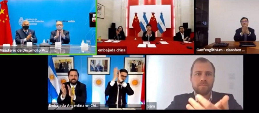 El acto de rúbrica se desarrolló vía teleconferencia y contó con la participación del embajador de Argentina en China, Sabino Vaca Narvaja; el embajador de la República Popular China en Argentina; Zou Xiaoli; y el vicepresidente de Ganfeng Lithium, Xiaoshen Wang; quien firmó el acta acuerdo en representación de la empresa china.