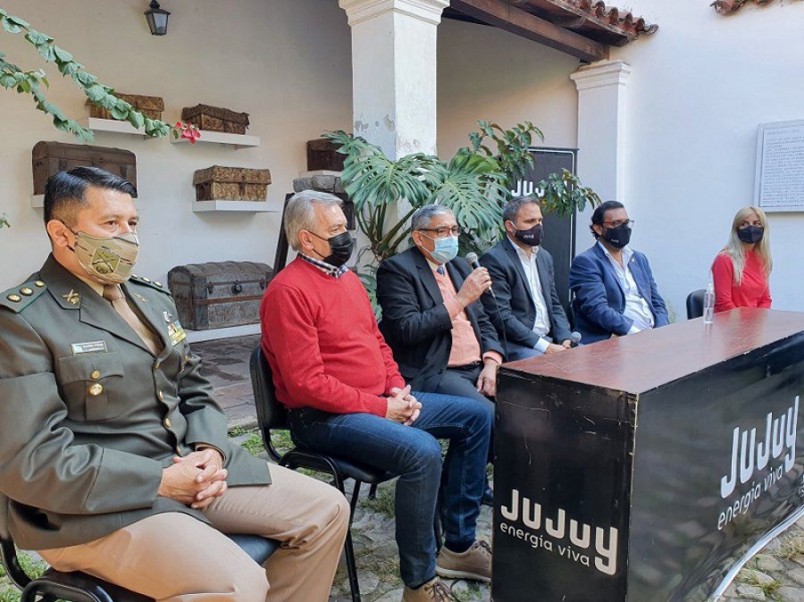 Finalmente invitó a la comunidad a participar con la entrada correspondiente siendo responsables y respetando las medidas de bioseguridad. El Secretario de Cultura, Luis Medina Zar, destacó que “hay todo un equipo y coordinación, no solo con otros ministerios sino con también con la Guarnición del Ejercito de Jujuy y la Municipalidad de la Capital para organizar un festejo adecuado con las medidas de bioseguridad”. Detalló que el día 25 de Mayo a las 17 horas se dejará inaugurado el Centro de Interpretación de la Bandera Nacional de la Libertad Civil en Casa de Gobierno, con un cupo limitado de asistentes. Simultáneamente será transmitido en los cuatro escenarios que se levantaran alrededor de la Plaza Belgrano y vía streaming también. Posteriormente se presentarán artistas jujeños en cada uno de los escenarios contando además con el apoyo de los locales adheridos. Por su parte, el Secretario de Turismo, Diego Valdecantos, se refirió a la logística y dijo, entre otras cosas, que hay dos tipos de accesos a la plaza, el acceso libre y gratuito, adquiriendo las entradas el mismo 25 de Mayo a través de la página de la Secretaria de Cultura (cultura.jujuy.gob.ar). En cuanto, al acceso pago, para asistir a los 7 locales que rodean plaza Belgrano, las entradas podrán ser adquiridas a partir de mañana en cada uno de las confiterías adheridas que rodean la plaza Belgrano y Casa de Gobierno sobre calle Sarmiento. Hizo hincapié que a partir de hoy a la tarde se habilitará una carpa “Energía viva” en plaza Belgrano donde podrán recabar mayor información de las actividades previstas. En tanto, el 2do. Jefe del Regimiento 20, Herman Suarez Durán, indicó que el Cambio de Guardia se concretará el día 25 de Mayo, en la tarde, con la participación de la Banda Militar “Éxodo Jujeño”. Además señaló que el día 26 y 27 el Regimiento 20 realizará la “Jornada de Puertas Abiertas” donde habrá exhibiciones, exposición y juegos recreativos al público en general de las actividades que realizan las unidades del Ejército. Por su parte, la Directora de Cultura, Valentina Millón, confirmó que “nuestra Bandera de la Liberta Civil ya terminó el proceso de restauración, en el que se venía trabajando desde hace dos años, está en un espacio con las condiciones de humedad, temperatura y control de iluminación óptimas para su preservación y exposición”. Luego el Secretario de Servicios Públicos de la Municipalidad de la Capital, Guillermo Marenco, aclaró que desde el 24 de mayo, en horas de la noche, se procederá a realizar el operativo de seguridad con el vallado correspondiente y al montaje de los escenarios. Puntualizó que el día 25 de Mayo estará cortada la circulación vehicular en la Calle Sarmiento desde calle Belgrano hasta la Avda. 19 de Abril, al igual que la calle Canónigo Gorriti desde la 19 de Abril hasta Avenida Urquiza. En cuanto a la calle San Martín, ese día, tendrá cortes intercalados. Remarcando que esta información que se brindó de forma acotada, será ampliada por la plataforma de la Municipalidad capitalinas y las redes sociales.