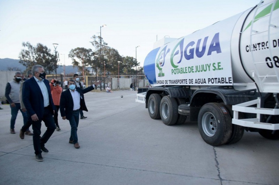 Morales en su discurso ponderó a la empresa Agua Potable de Jujuy S.E., que pasó de ser deficitaria a tener recursos propios que le permiten hacerse del equipamiento necesario para optimizar sus funciones.