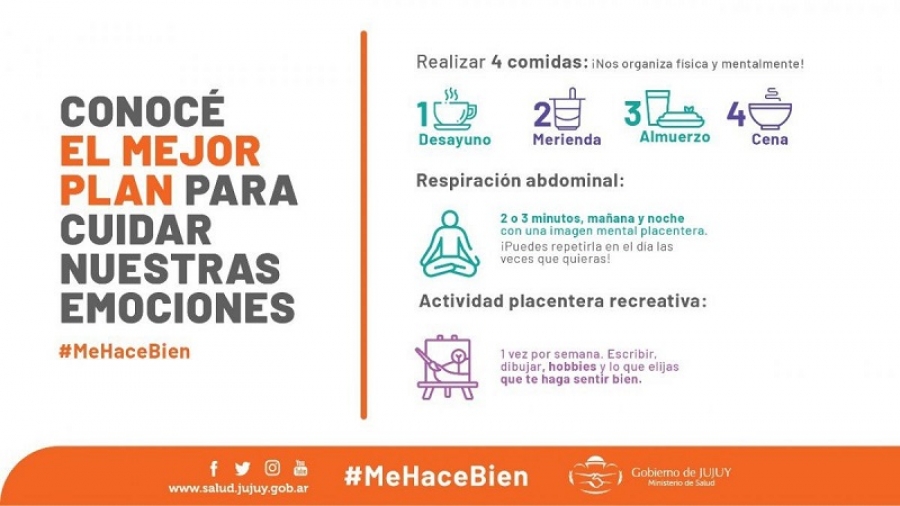 Los cambios abruptos siempre nos hablan y dan cuenta que algo no está bien en la otra persona, tanto la extrema tranquilidad como la sobreexaltación y son motivo para preguntar cómo estás, qué te está pasando y ofrecer ese espacio de escucha. ´Me hace bien´ implica poder estar predispuesto para el otro, ofrecer la escucha que le permita abrirse y prevenir cualquier situación de malestar emocional. Estas señalas pueden observarse también en uno mismo y para ello es imprescindible escuchar las emociones, no ´patear´ lo que sentimos, reconocer la posibilidad de estar incómodo, de no estar a gusto, de no encontrar el sabor a los vínculos, al trabajo, al estudio o aquello que antes era bienestar, sabiendo que se puede pedir ayuda, incluso profesional sin que ello implique necesariamente el diagnóstico de una patología.