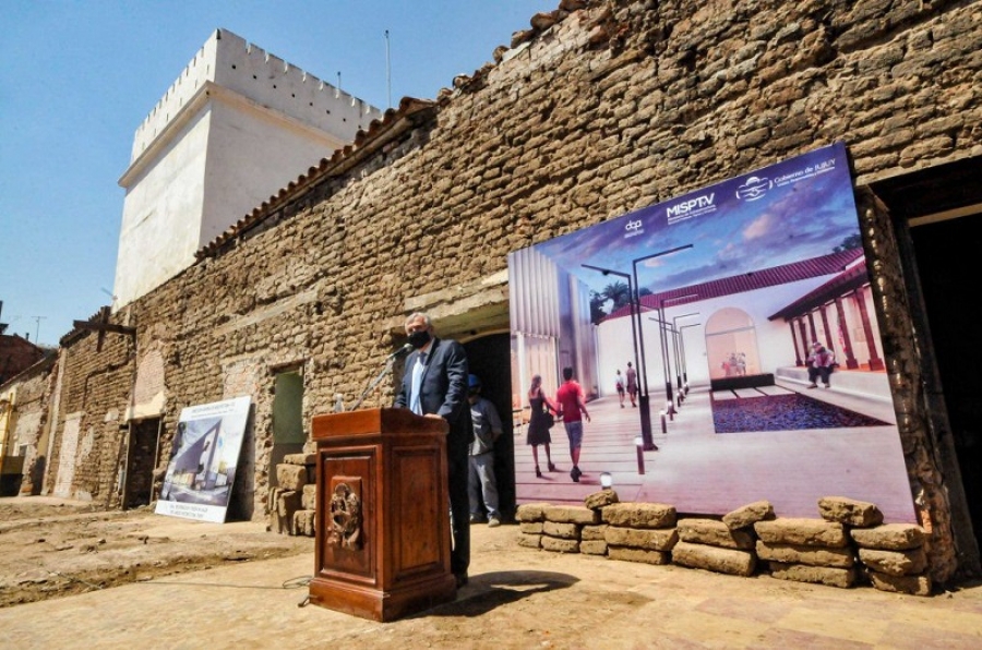 También estuvieron presentes, el vicegobernador de la Provincia, Carlos Haquim; los ministros de Infraestructura, Carlos Stanic; de Desarrollo Humano, Natalia Sarapura; y de Cultura y Turismo, Federico Posadas; el titular del Ente Autárquico Regulador de Planificación Urbana, Pablo Alejandro Civetta; los senadores nacionales Mario Fiad y Silvia Giacoppo, el diputado nacional Jorge Rizzotti, el presidente del Concejo Deliberante de San Salvador de Jujuy, Lisandro Aguiar; legisladores provinciales y ejecutivos de las empresas Sidera y JUMI, adjudicatarias de las obras. El proyecto fue diseñado desde el Ente de Planificación Urbana Provincial y desde la Dirección General de Arquitectura del Ministerio de Infraestructura, Servicios Públicos, Tierra y Vivienda, comienza su ejecución. Estas obras tienen su antecedente en 2019, cuando, desde el Ministerio de Infraestructura, el Gobierno de Jujuy encaró el salvataje y puesta en valor de su recova y fachada. Ese año también y en la ocasión de inaugurar las obras de puesta en valor de la recova, el Cabildo de Jujuy quedó protegido con el escudo azul de la UNESCO. Con el mismo compromiso con el patrimonio histórico de los jujeños, se hizo la obra de resguardo de la Bandera de la Libertad Civil, las fachadas del Teatro Mitre y la Iglesia de Uquía. Al respecto, Morales destacó que este proyecto corresponde al Plan Maestro de Desarrollo 2021 – 2023, en cuyo marco comenzó la construcción de edificios educativos nuevos sobre un total de 258; se avanza en la elaboración de pliegos para licitar la obra de 2.000 kilómetros de conectividad; se procedió al cierre de 16 basurales de los 70 que se prevé remediar a fin de año; el miércoles 29 se iniciará la construcción de quirófanos y terapia del hospital “Dr. Arturo Zabala” de Perico; se licitó la fase de finalización de la obra de maternidad del hospital “Carlos Snopek” de Alto Comedero; próximamente se adjudicarán obras del hospital “Dr. Oscar Orías” de Libertador General San Martín; comenzó la construcción de la unidad penal de El Chalicán; se inaugurará en breve el complejo penal Nº 3 de mujeres; está en marcha el concurso de ideas para definir el destino del penal de Gorriti; pronto se licitará la Ciudad de las Artes; se avanza hacia la construcción de la Ciudad Judicial en Alto Padilla; se licitará en los próximos meses la Ciudad Deportiva proyectada en Alto Comedero; el Museo Lola Mora y el tren Volcán - Tilcara en una primera fase. “Tenemos muchas inversiones en salud, seguridad, educación, turismo y producción, es decir que el Plan Maestro de Desarrollo 2021 – 2023 se está materializando con hechos concretos y no son palabras dichas al viento”, indicó. Por otra parte, señaló que el museo El Cabildo “reflejará la vida de Jujuy y sus 10.000 años de interculturalidad” y agregó que “también pondrá en valor nuestra lucha por la Independencia, porque Jujuy entregó toda una generación de hombres y mujeres”. “Es nuestra responsabilidad contar y dar a conocer la historia y eso haremos en el Cabildo”, afirmó y resaltó que para ello se contará con “el y tercer archivo histórico más importante del país”. “Seguimos generando hitos y concretando realidades”, subrayó el mandatario. Stanic, a su turno, expresó que “gracias al empuje del gobernador Morales, esto que era un sueño hoy comienza a ser una realidad” y puntualizó que “cuando esta obra esté lista en 2023, será lugar de encuentro y disfrute de jujeños y turistas, como así también motivo de orgullo”. “Esta es una concreción más del maravilloso Plan Maestro de Desarrollo 2021 – 2023”, completó el ministro.
