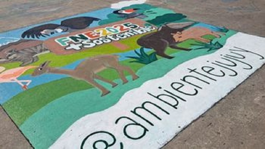 Mientras que el Ministerio de Ambiente también ofreció un espacio de recreación, para que, a través de la educación ambiental, los niños, las niñas, los adolescentes, los jóvenes, las personas adultas, y todas las familias pudieran aprender sobre distintos temas de la agenda ambiental a través del juego. Y finalmente también los equipos dejaron estampada una obra de arte en el asfalto de la avenida que está frente a los food trucks, bajo la consigna de vivir una “Fiesta + sostenible”, y conservar la biodiversidad y proteger el ambiente.En la pintura se observan animales de la fauna silvestre nativa que forman parte de la gran riqueza ecosistémica de Jujuy, y de la enorme biodiversidad local. Muchos de los cuales fueron declarados Monumentos Naturales por el riesgo y las amenazas que enfrentan, como el cóndor andino (Vultur gryphus), el tucán grande (Ramphastos toco), el gato andino (Leopardus jacobita), o el tapir (Tapirus terrestris). O bien se trata de animales que además forman parte de programas y estrategias que el gobierno de la provincia lleva adelante: como la vicuña (Vicugna vicugna) en las Esquilas Sustentables de Vicuñas; el Programa de Conservación Cóndor Andino junto con la Fundación Bioandina, o la Estrategia de conservación del con la Alianza Gato Andino (AGA), o el Plan de recuperación de la especie tapir en la zona de las yungas, en coordinación con la Fundación Rewilding, el Ecoparque de Buenos Aires, y el emprendimiento privado Ecoportal de Piedras.Al respecto, el director de Educación y Comunicación Ambiental, Nicolás Herrera, destacó el trabajo de los equipos de dicha área y de la Secretaría de Calidad Ambiental, y puso de relieve además que “desde el 2017 venimos desarrollando diversas acciones en el marco de la Fiesta Nacional de los Estudiantes, porque reconocemos que es una de las festividades más movilizantes de la juventud en Jujuy que no solo tiene que ver con la celebración del estudiantado y la primavera, sino que sobre todo pone en valor el compañerismo, la unidad, la solidaridad, la reciprocidad, el proyecto común, los sueños colectivos”.“Desde el Ministerio de Ambiente y Cambio Climático trabajamos siempre bajo esas premisas, porque son las que hacen posible vivir en una sociedad mejor”, añadió Herrera. Y luego de recordar que el Ministerio liderado por María Inés Zigarán viene concretando una agenda de juventudes, ambiente y cambio climático desde hace mucho, “porque los jóvenes entienden que el ambiente es hoy una de las más grandes causas, sino tal vez la más importante”, reconoció en el estudiantado jujeño y en la Fiesta Nacional de los Estudiantes, “la posibilidad de imaginar otros horizontes de futuro posible”.