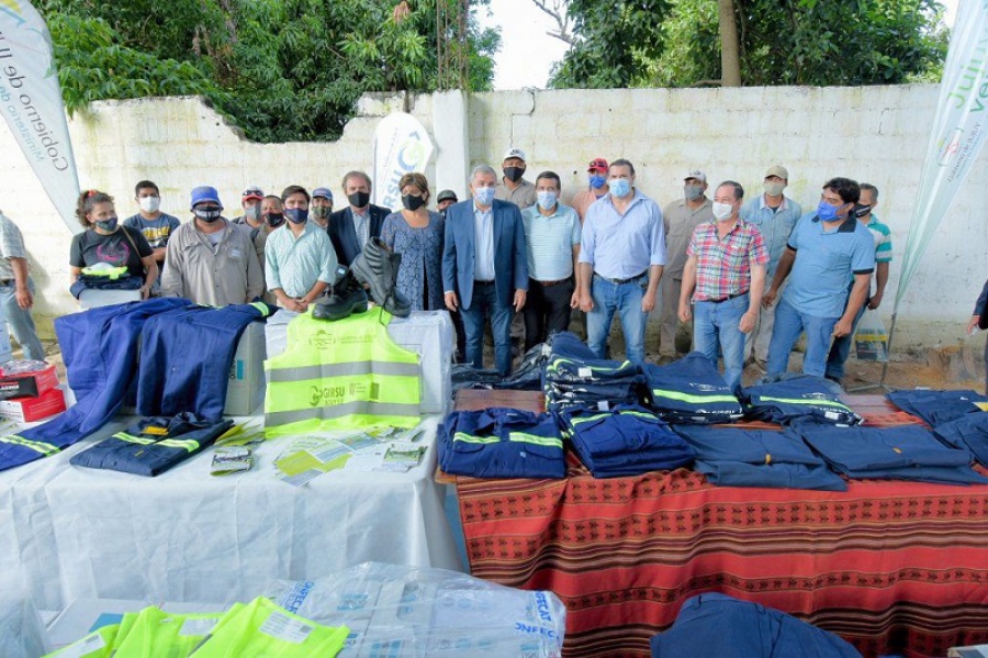 “Este plan es para fortalecer el sistema. Es un pequeño paso que damos junto a los intendentes”, remarcó. Por su parte, la ministra María Inés Zigarán, hizo un raconto de los avances logrados desde 2015, ponderando como hitos de gestión la reactivación del Proyecto GIRSU/BID y el financiamiento BEI que permitió la compra de camiones; además el cierre de basurales históricos como Chanchillos y la mayoría de Quebrada de Humahuaca. "Nuestro gobierno tiene un compromiso con las jurisdicciones locales en materia de gestión de residuos. Hemos logrado lo que ningún gobierno anterior pudo concretar", dijo la funcionaria. Y luego de precisar que hoy "estamos entregando insumos y recursos para garantizar la seguridad y salud de los empleados que prestan servicios de recolección en los municipios, en contexto de pandemia", anticipó también que este año se licitará la Estación de Transferencia y Clasificación de Libertador General San Martín, además de equipamiento para las jurisdicciones que no recibieron en la primera licitación. Anuncios para Caimancito Por otra parte, Morales anunció próximamente se licitará la obra del Centro de Transferencia de Residuos e Caimancito para eliminar el basural que está cerca de la plaza, que contamina y poco contribuye al medio ambiente. El objetivo es fortalecer a los gobiernos locales, a sus trabajadores y a los actores asociados a la gestión de RSU (recuperadores, los emprendedores sustentables, comunidades indígenas que trabajan con residuos) para afrontar los desafíos asociados a la emergencia sanitaria por COVID 19 y dengue, como los nuevos cuidados en la gestión de RSU (medidas de higiene y seguridad del trabajo, bioseguridad, cumplimiento de protocolos, etc). El plan también busca garantizar la seguridad sanitaria en las plantas del sistema GIRSU que están funcionando actualmente: el Centro Ambiental y la Planta de Transferencia y Clasificación de San Pedro de Jujuy y hacer frente a los impactos sociales y económicos generados por la parálisis productiva producto de la crisis por COVID 19, y en particular la asistencia a sectores particularmente afectados recuperadores informales, emprendedores que trabajan con residuos. Esta iniciativa es parte del Proyecto de Gestión Integral de Residuos Sólidos Urbanos y Valorización Energética que financia el Banco Europeo de Inversiones e implicó una inversión de 2 millones de dólares, de los cuales 1,5 millones se destinaron a la compra de ropa técnica, calzado de seguridad, elementos de protección personal, equipamientos de sanitización, termómetros, motoguadañas, mochilas de desinfección, etc., y 500 mil dólares se aplicarán para fortalecer a recuperadores informales, emprendedores sustentables y comunidades indígenas y aminorar el impacto socio económico de la pandemia.