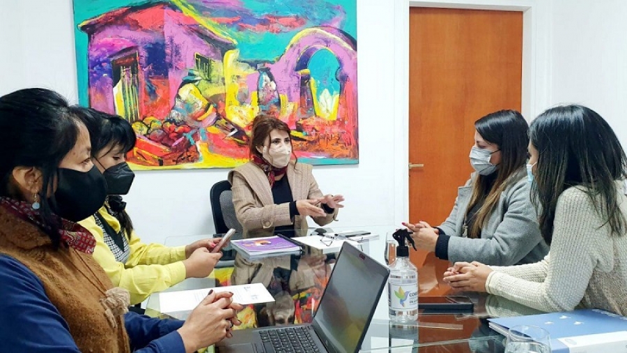 En el marco del programa "Formación para la Igualdad", la Presidenta del Consejo Provincial de la Mujer e Igualdad de Género Alejandra Martínez junto a la Directora de Políticas Culturales Lic. Rebeca Chambi y la Asesora del Consejo, Dra. Luz Gutiérrez, se reunieron con las principales referentes de la Fundación A+T Innova, Carla Soza Presidenta y Dana Osderay Navarro, Vice presidenta, a los efectos de avanzar en la articulación interinstitucional relacionada a la formación de personas del ámbito del emprendedurismo.