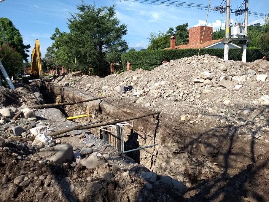 Por último, es menester describir que se tuvo que reubicar la cañería del colector cloacal cuya traza original estaba por la margen derecha del Río Grande y que, fue dañada por las crecientes extraordinarias del periodo estival del 2018, en una longitud mayor a 800 metros donde se utilizaron 1470 mts de cañería de PVC Ø 250, 14 Bocas de registro combinadas entre premoldeadas de hormigón y de PEAD y de este modo poder hacer realidad el sueño de los residentes de la zona, y al mismo tiempo concretar una política pública que incluye, integra y preserva nuestra armonía social y ambiental.