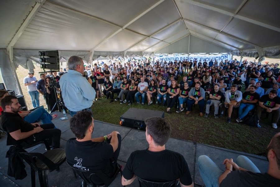 El precandidato a presidente de la Nación por la Unión Cívica Radical, Gerardo Morales, participó de la apertura de un campamento dirigencial convocado por la JR San Nicolás, en cuyo marco se multiplicaron las expresiones de apoyo al líder del radicalismo.