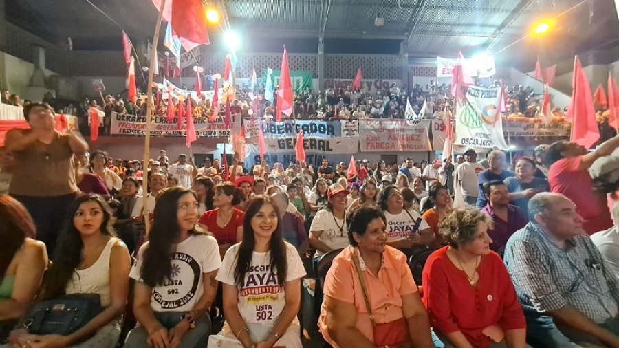 Sadir presentó la propuesta del frente junto al intendente Oscar Jayat, en instalaciones del sindicato del Papel, ante un gran número de dirigentes y simpatizantes.