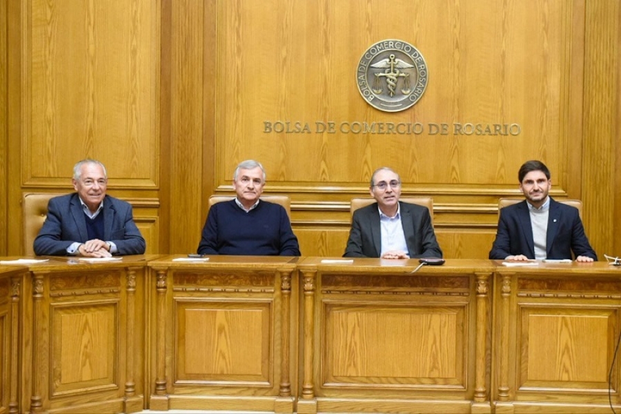 Gerardo Morales se entrevistó con la cúpula de la Bolsa de Comercio de Rosario (BCR), a los efectos de compartir una visión de futuro con crecimiento sostenible, conjugando y compatibilizando intereses y prioridades de las áreas portuarias y las economías regionales.