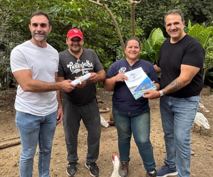El presidente del Bloque de concejales de La Libertad Avanza, Gustavo Martínez, entregó a los responsables de la granja “Don Felipe”, la declaración de interés que sancionó el Concejo Deliberante capitalino.