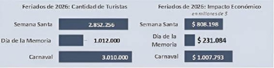 l En comparación con 2025, la cantidad de viajeros creció un 5,6%, mostrando una recuperación moderada de la actividad turística en fechas clave del calendario. Pero a pesar de que más gente viajó, el gasto total descendió un 18,9% anual en términos reales; es decir, descontando el efecto inflación.